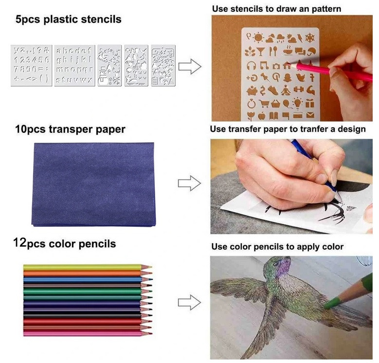 Művészi alkotásokhoz – sablonokkal, színes ceruzákkal akár komplex motívumokat is készíthetsz