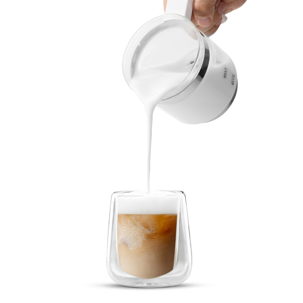 Kifinomult és ergonomikus designnal rendelkezik, amely illeszkedik a modern és hagyományos konyhákba egyaránt. Az egygombos vezérlés lehetővé teszi, hogy a felhasználók könnyedén válasszanak a hideg és meleg tejhab között. Csak nyomja meg a bekapcsológombot és néhány pillanat alatt élvezheti a barista minőségű, krémes tejhabot. A hideg tejhab készítése egyszerű és gyors. Öntsön hideg tejet a jelölésnek megfelelően a tartályba, majd nyomja meg kétszer a bekapcsoló gombot, hogy elindítsa a készüléket. A tejhabosító hatékonyan működik, és gyönyörűen habosítja fel a hideg tejet, amely tökéletes kiegészítője lesz jeges kávéknak vagy frissítő smoothie-knak.
