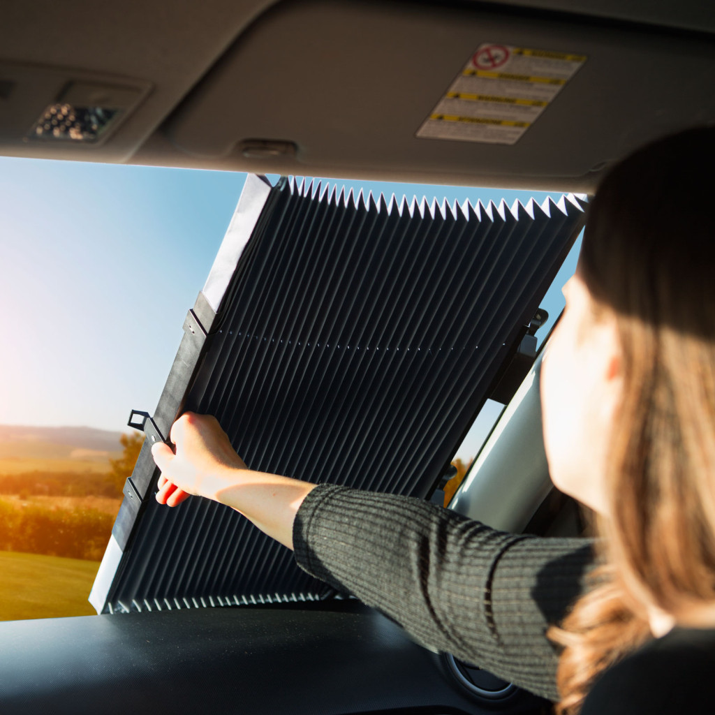 Védje meg Ön is autója műszerfalát, kormányát az UV sugárzástól és a nyári forróságtól. Nem feltétlen szükséges átforrósodott autóba beülnie egy hosszú nap után, a roló használatával az alumínium fényvisszaverő réteg megakadályozza, hogy az autó beltere felforrósodjon. Ezáltal nem kell átszellőztetni vagy erős fokozatra kapcsolni a légkondicionálót. A roló egyszerűen, tapadókorongok segítségével rögzíthető a szélvédő vagy a hátsó ablak belső oldalán. A kompakt, vékony kialakításnak köszönhetően az "A" oszlopnál nem képez plusz holtteret, így nem szükséges minden alkalommal le és felszerelni a szélvédőről. Az erős tapadókorongok lehetővé teszik, hogy utazás közben összezárva a szélvédőn tartsa a rolót, megálláskor egyszerűen csak húzza el és máris megvédte autóját az UV sugárzástól és a tűző napsütéstől. Előnye, hogy nem kell tárolni, csomagtartóból elővenni és kihajtogatni egy hagyományos napfényvédőt. Különösen javasolt kisgyermekes családok vagy háziállattal rendelkezők részére, hiszen a gyermeket, háziállatot nem egy felforrósodott autóba kell beültetni.