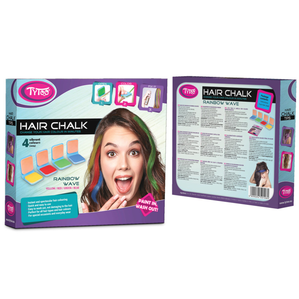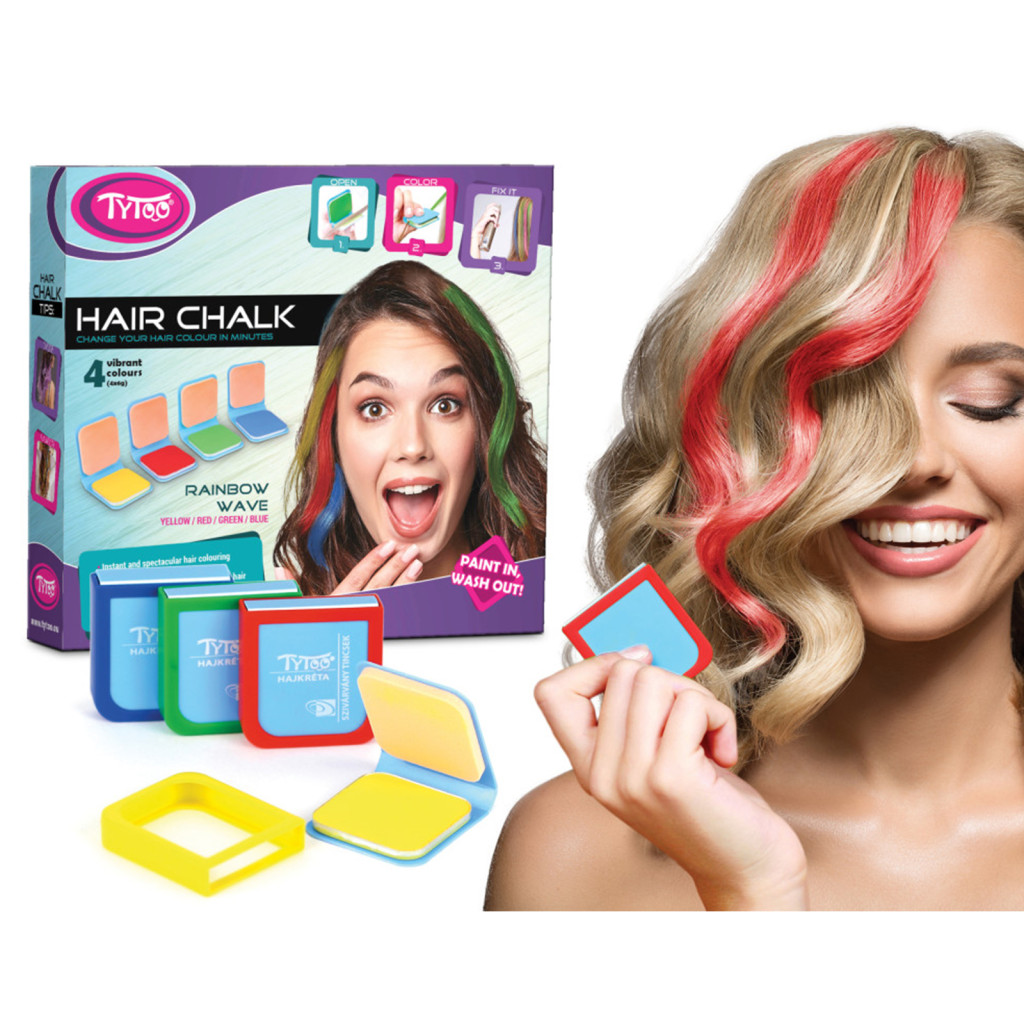 Fogjon meg egy vékony tincset a hajkrétába és összenyomva húzza végig a tincsen, így máris gyönyörködhet az élénk szivárvány színekben. Az erősebb szín eléréséhez fordítsa meg a hajkrétát és ugyanazon a hajtincsen húzza végig még egyszer. Így a hajtincs mindkét oldala színes lesz és élénkebb lesz a végeredmény is. A világos és a sötét hajat a hajkréta egyformán befogja, természetesen a világos hajban a sötétebb színek, a sötét hajban a világosabb színek látszanak erősebben. A TyToo hajszínező használata után hajlakkal fixálja a tincseit, így tartósabbá teheti színes fürtjeit. Így a krétapor nem fogja meg a párnáját vagy a ruháját, és sokkal ellenállóbb lesz a nedvességgel szemben is.
