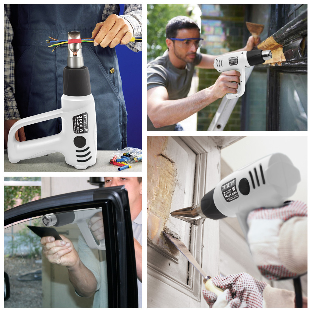 Professzionális hőlégfúvó, fokozatmentesen állítható levegőáramlással és két hőmérsékletfokozattal. 4 különböző fúvókával az univerzális felhasználhatóság érdekében. A kényelmes, könnyű használatot segíti az ideális súlyelosztás és az ergonomikus markolat.