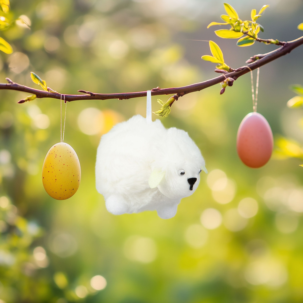 Tegye még hangulatosabbá otthonát ezzel a bájos, fehér bárányfigurával! A puha és bolyhos kialakítású dekoráció kiváló választás húsvéti asztaldíszként, polcdekorációként vagy akár akasztva is. Az akasztónak köszönhetően könnyedén elhelyezhető, így bármely helyiség ünnepi dísze lehet.