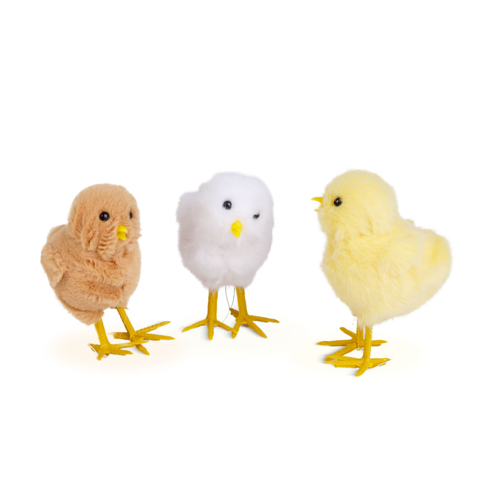 Ezek a bájos húsvéti csibék tökéletes kiegészítői lehetnek bármely ünnepi dekorációnak. A három különböző színű csibe – fehér, sárga és barna – élethű kialakítása és puha borítása vidám tavaszi hangulatot teremt. Akár asztaldíszként, akár kosarakba vagy ajándékcsomagokba helyezve dekorációként is remek választás. A csibék könnyűek, mégis stabilan állnak, így bárhová elhelyezhetőek. Ideálisak otthoni vagy irodai dekorációhoz, valamint kreatív húsvéti kompozíciókhoz. A minőségi anyaghasználatnak köszönhetően hosszú távon is megőrzik szépségüket.