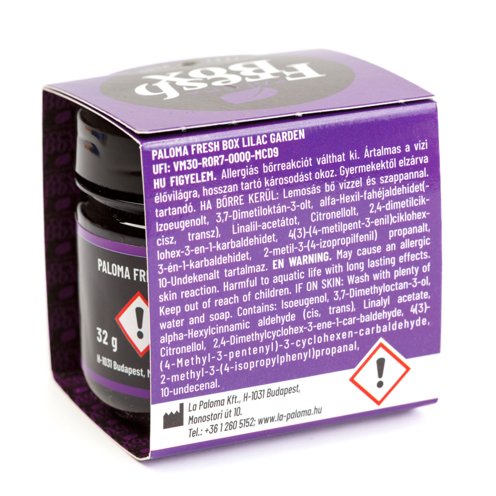 Használata: Távolítsa el a zárófóliát a kupak alól majd csavarja vissza a kupakot. A tégelyt stabil, vízszintes felületre állítva jól szellőző helyiségben használja. Ügyeljen rá, hogy a tégely ne boruljon fel. Az illatokra érzékeny vásárlók használják kellő elővigyázatossággal a terméket. A légfrissítők használata nem helyettesíti a megfelelő higiéniát.
