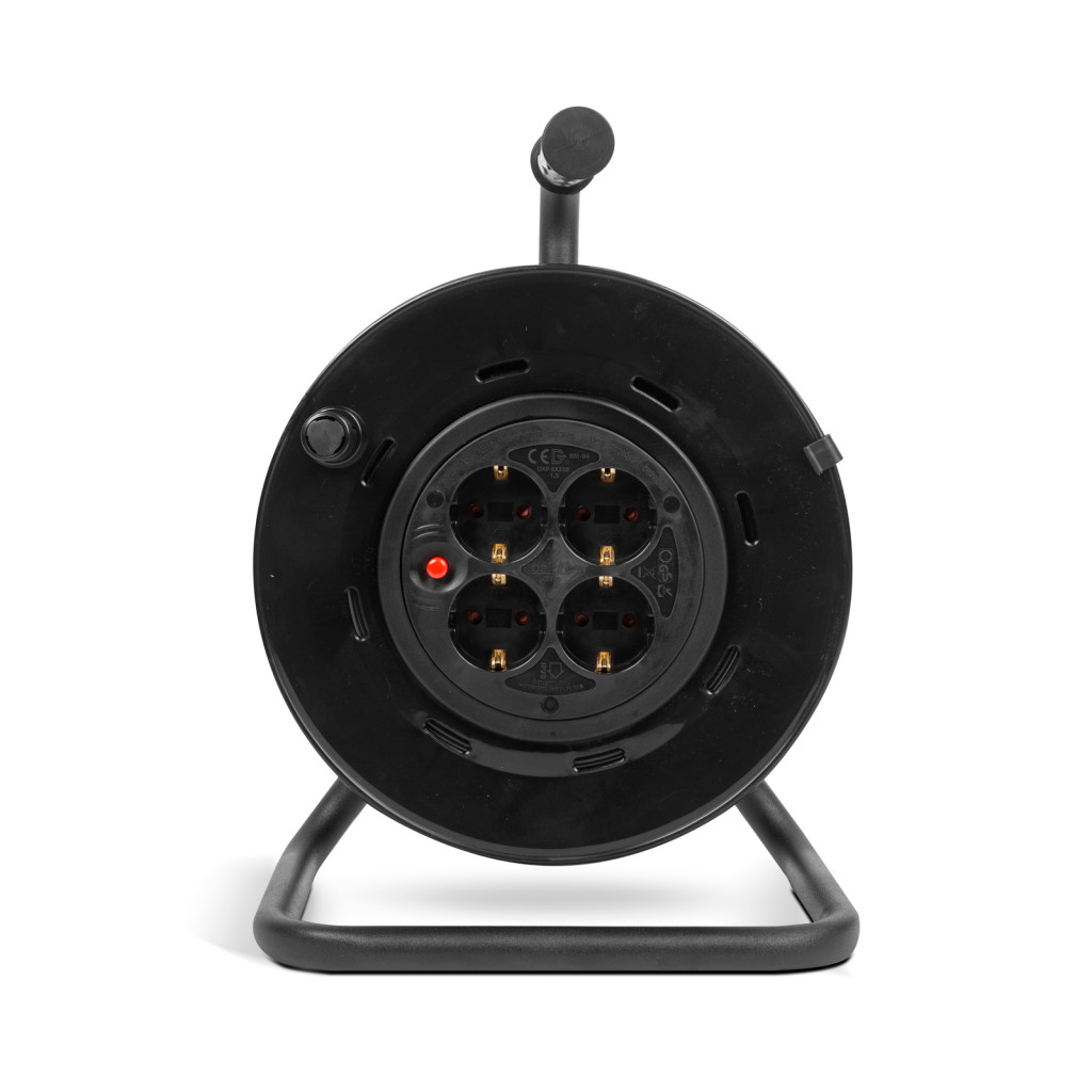 Masszív, nagyméretű dobbal szerelt kábeldob, amely alkalmas 25 méter hosszabbító kábel helytakarékos tárolására. A 4 db 250V-os hálózati aljzat gyerekvédelemmel van ellátva, így elkerülhetőek a gyermekbalesetek. A készülék hőkioldóval is rendelkezik, így megakadályozható, hogy a készülék melegedjen és túlterhelésnek legyen kitéve feltekert üzemeltetés esetén. Kérjük, ha lehetősége nyílik rá a hőkioldó biztosíték ellenére se használja a kábeldobot feltekert kábellel!