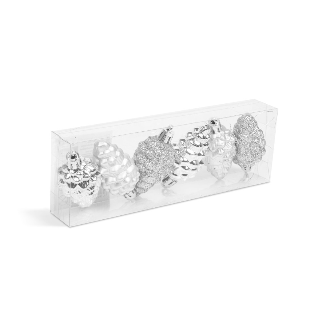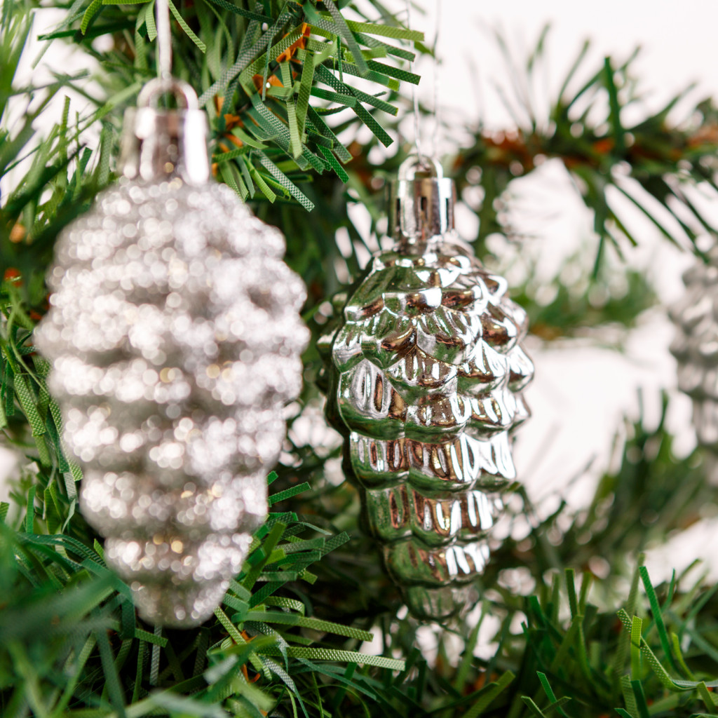Ez az ezüst színű, toboz formájú karácsonyfadísz kiválóan illik a karácsonyi dekorációhoz. A csillogó felülete visszaveri a környezeti fényeket, így lenyűgöző látványt nyújt. A tartós műanyagból készült dísz sok évig ékesítheti karácsonyfáját. Fenyőfa, girlandok, asztali díszek dekorálásánál elengedhetetlen kiegészítő lehet, amely varázslatos, ünnepi hangulatot teremt.