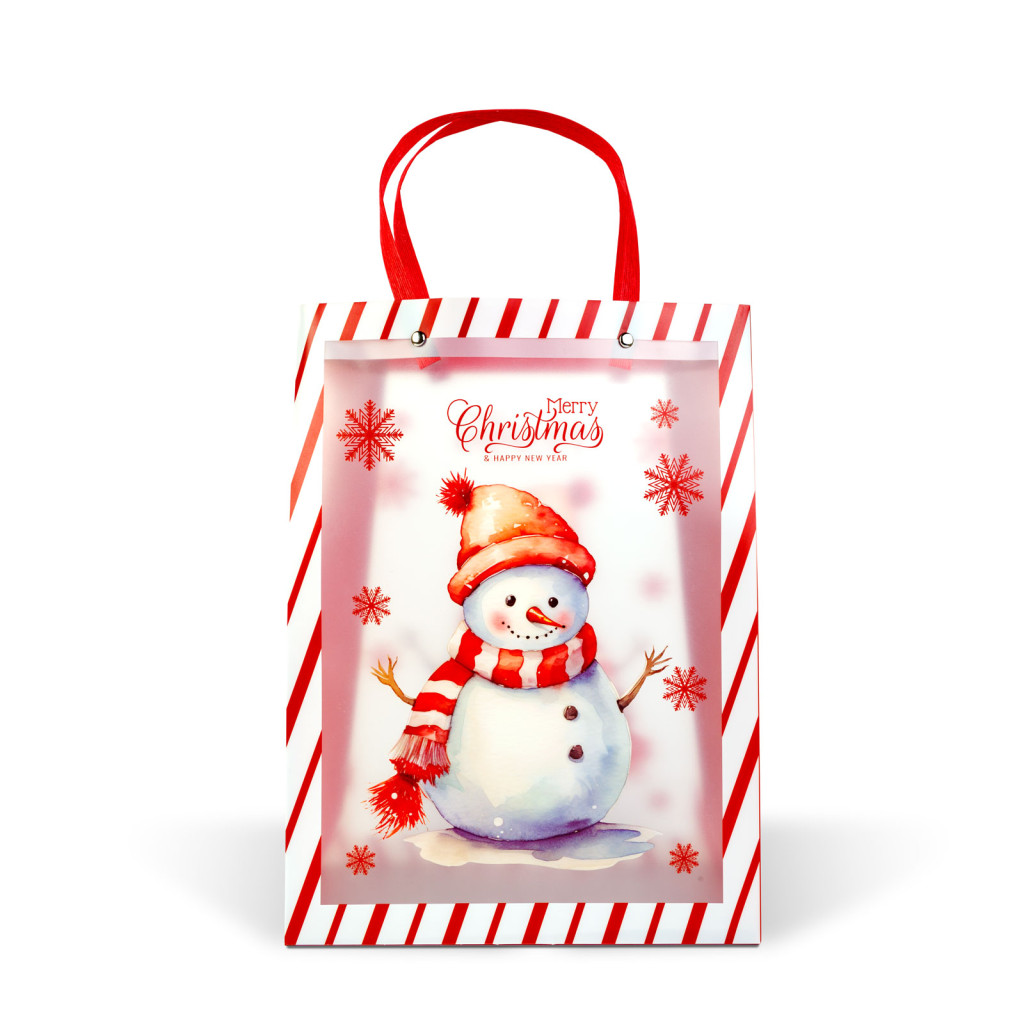 Tegye különlegessé az ajándékozást ezzel a mutatós karácsonyi ajándéktáskával! Praktikus méretű, így ideális nagyobb méretű meglepetések, édességek vagy ajándékcsomagok átadására is. Kétféle ünnepi mintával – lakókocsival vagy hóemberrel – kapható. A táska áttetsző borítása különösen elegáns, dekoratív megjelenést kölcsönöz.
