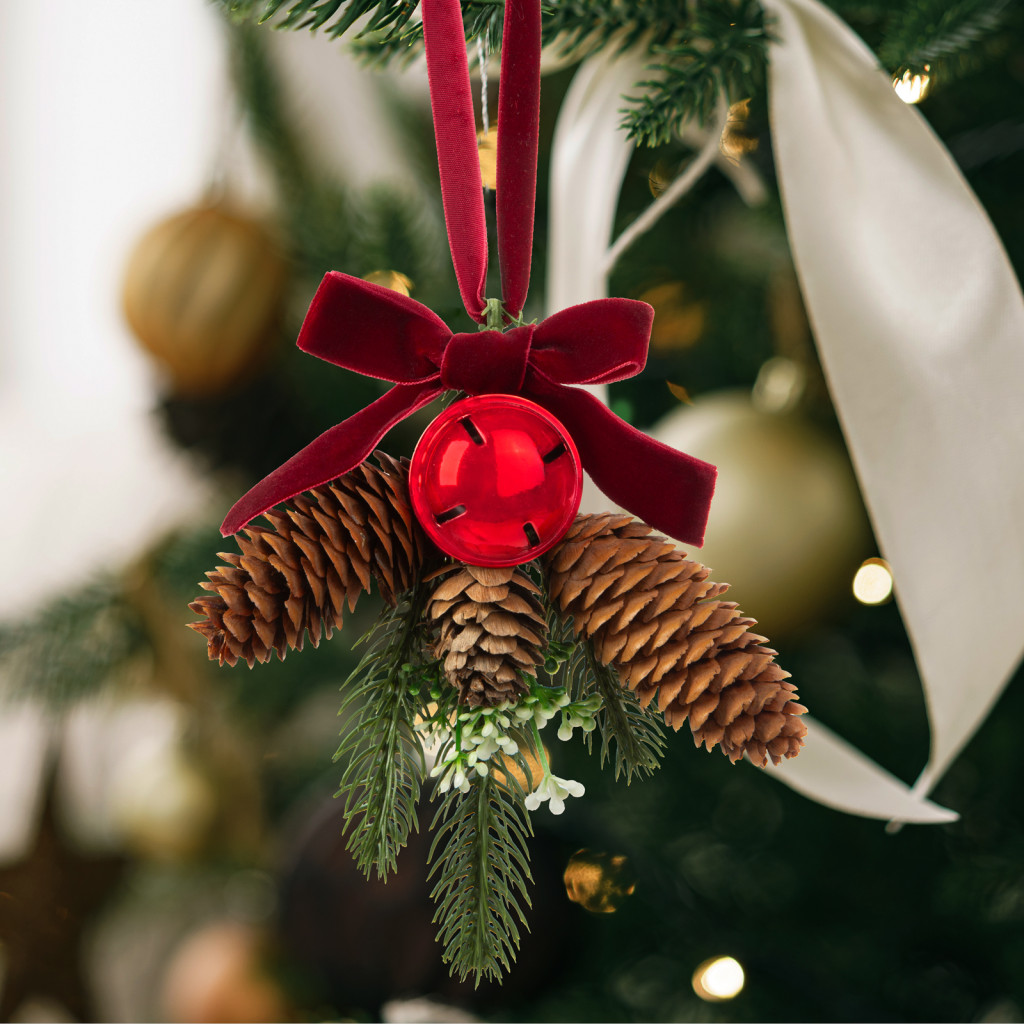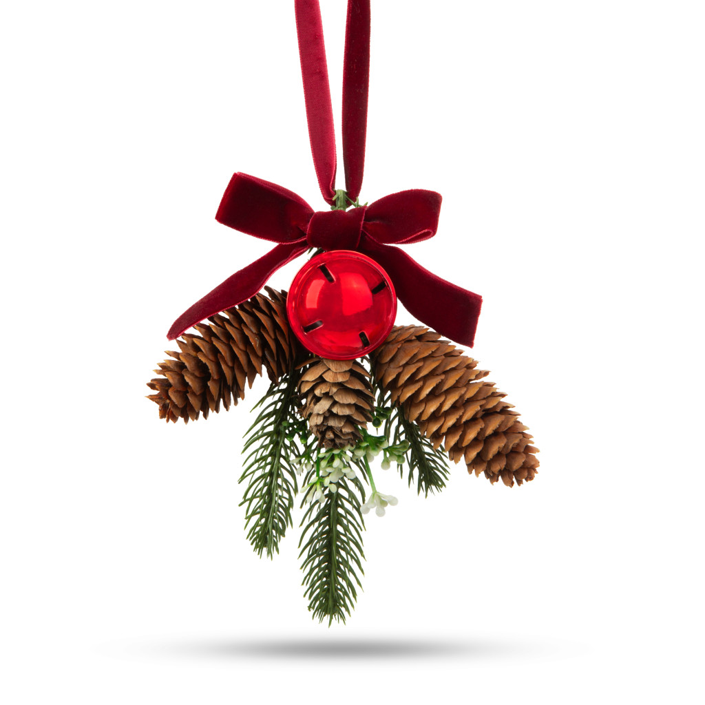A dísz alapját egy műfenyő ág alkotja, amely tobozzal, csillogó pirosszínű csengettyűvel és szalaggal van dekorálva. A műfenyő ág természetes zöld színével és dús ágazatával valósághű megjelenést kölcsönöz a dísznek.