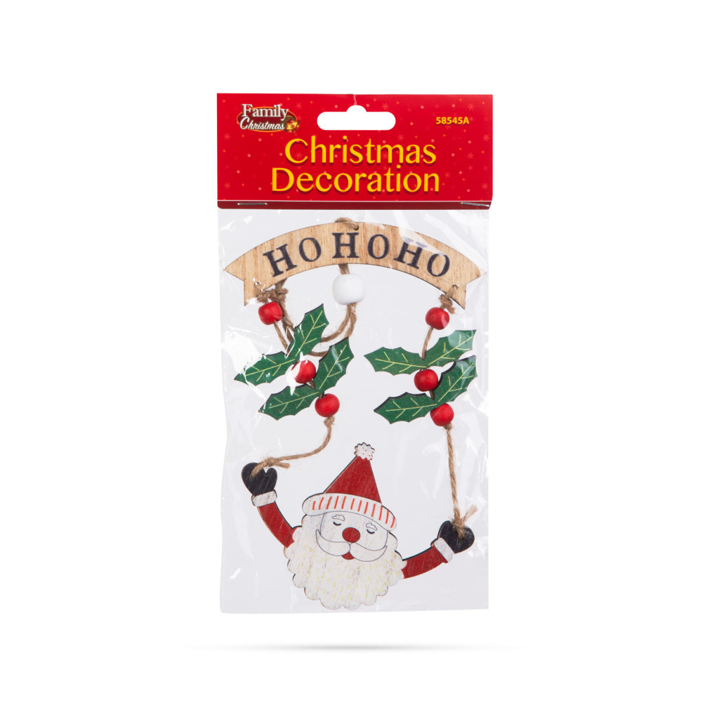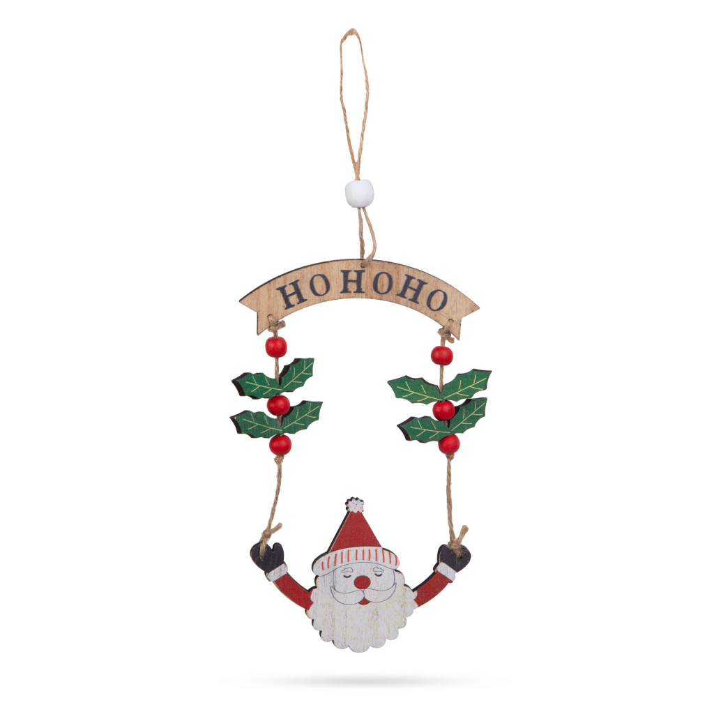 Ez a gyönyörű fából készült Mikulás figura tökéletes kiegészítője lehet a karácsonyi dekorációnak otthonában. A figura egy szépen kidolgozott Mikulás alak, amely bogyókkal és HoHoHo felirattal van díszítve, ami az ünnepi hangulatot és vidámságot sugallja. A fából készült díszek, melegséget és természetességet kölcsönöznek bármilyen ünnepi dekorációnak. A kidolgozott, részletesgazdag festés gondoskodik az aprólékos és szemet gyönyörködtető megjelenésről. A figura egy erős, de könnyű fából készült darab, amely felakasztható az otthona különböző pontjain.