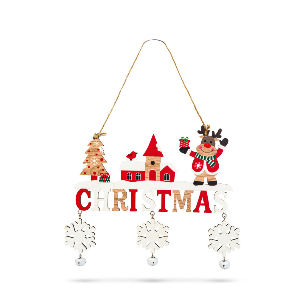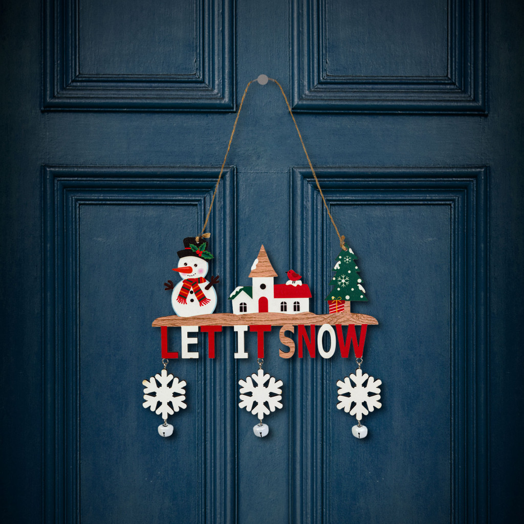 Tegye még ünnepibbé otthonát ezzel a bájos, akasztható karácsonyi fa dekorációval! A dísz két különböző változatban elérhető: „Christmas” felirattal és rénszarvassal, vagy „Let It Snow” felirattal és hóemberes téli jelenettel. A természetes fa alapanyag meleg és rusztikus megjelenést kölcsönöz a dekorációnak, amelyet a lelógó csengettyűk tesznek még különlegesebbé. Könnyen felakasztható ajtóra, falra, ablakba vagy akár karácsonyfára is, így tökéletes választás bármilyen ünnepi dekorációhoz.