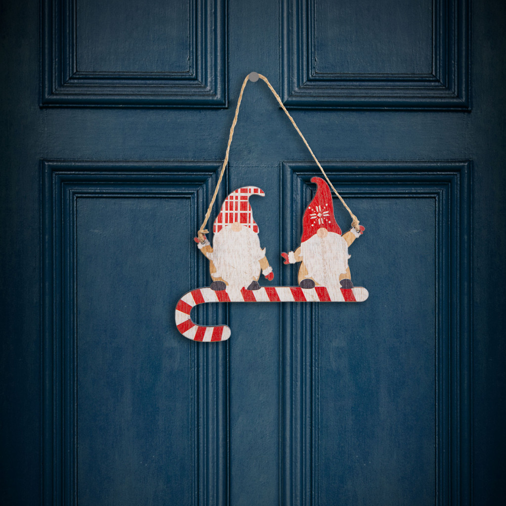 Ez a gyönyörű fából készült manó figurás dísz tökéletes kiegészítője lehet a karácsonyi dekorációnak otthonában. Szépen kidolgozott, aranyos manó figurák, amelyek cukorboton állnak, ami az ünnepi hangulatot és vidámságot sugallja. A fából készült díszek, melegséget és természetességet kölcsönöznek bármilyen ünnepi dekorációnak. A kidolgozott, részletesgazdag festés gondoskodik az aprólékos és szemet gyönyörködtető megjelenésről. A figura egy erős, de könnyű fából készült darab, amely felakasztható az otthona különböző pontjain.