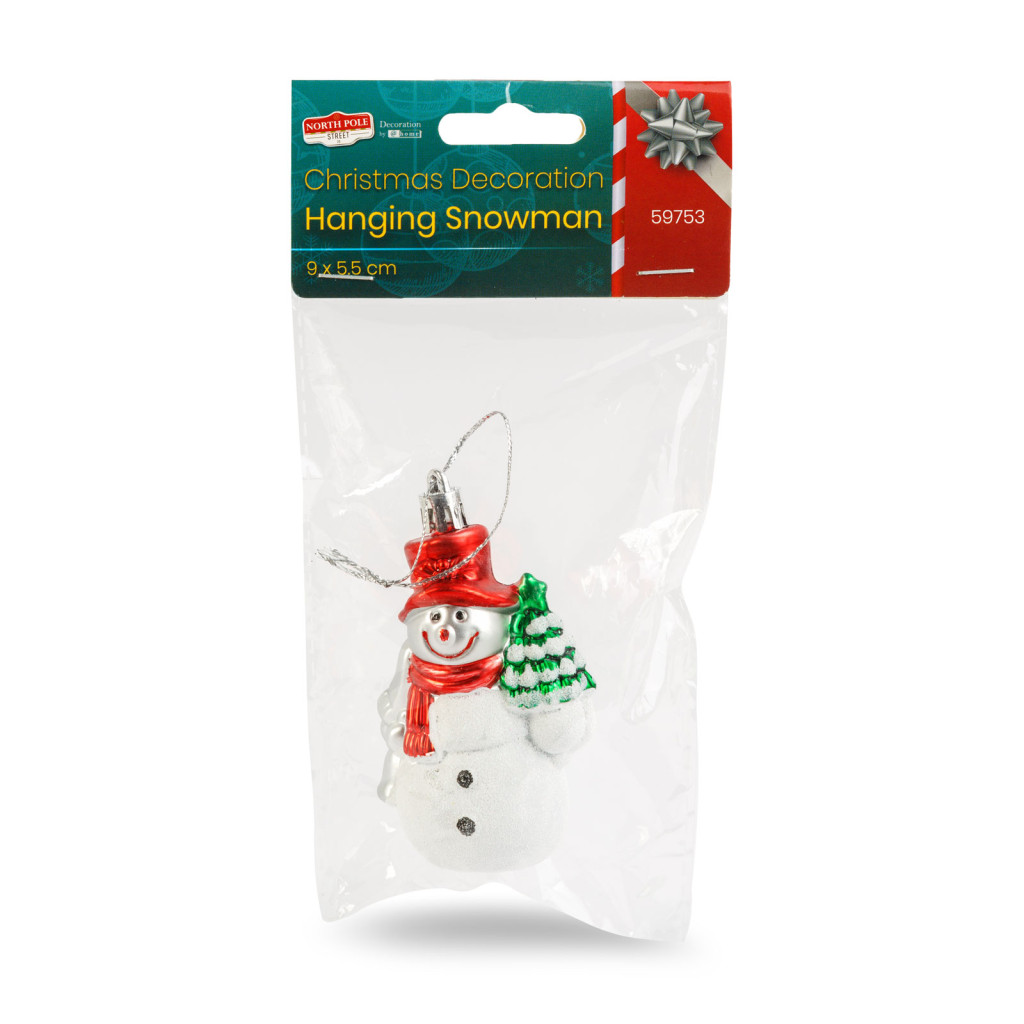 Tegye még varázslatosabbá karácsonyfáját ezzel a vidám hóember díszítéssel! A dekoráció, egy fenyőfát a kezében tartó hóembert ábrázol, amely tökéletes ünnepi hangulatot teremt. A könnyű, strapabíró anyagnak köszönhetően egyszerűen felakasztható karácsonyfára, ajtódíszre vagy akár ajándékcsomagokra is. Az élénk szín és a glitteres, fehér talprész garantáltan a karácsonyi dekoráció kedvelt elemévé teszi.