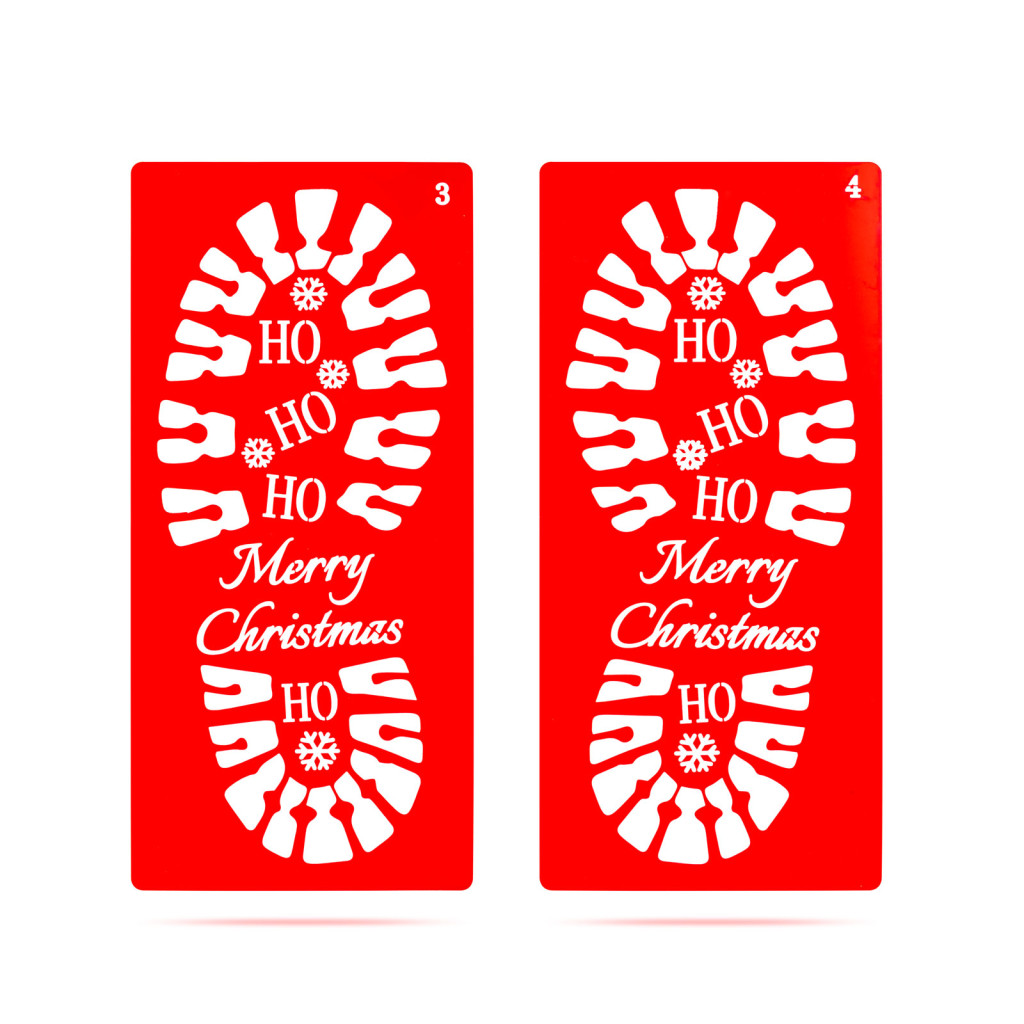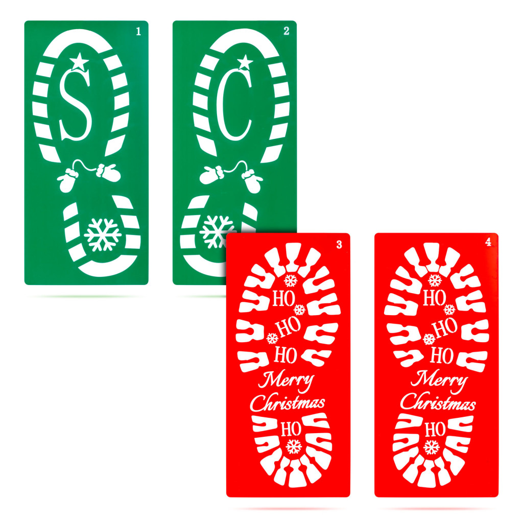 Varázsoljon mesés karácsonyi hangulatot otthonába ezzel a különleges lábnyom sablon szettel! A 30,5 x 14 cm-es műanyag sablonok segítségével egyszerűen megalkothatja a Mikulás vagy a karácsonyi manók titokzatos lábnyomait. A szett 4 különböző sablont tartalmaz, amelyek vidám karácsonyi motívumokkal és feliratokkal díszítettek, például „Merry Christmas” üzenettel vagy "HO-HO-HO" felirattal. A strapabíró, de hajlékony, rugalmas műanyag lehetővé teszi a könnyű használatot és tisztítást, így évről-évre felhasználható.