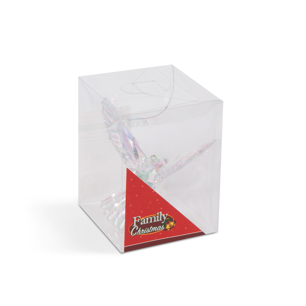 Ez a karácsonyi dísz egy különleges irizáló hatású kolibri, amelyek elegánsan díszíti a karácsonyifát vagy bármely más ünnepi összeállítást. Az akrilból készült dísz könnyű, mégis strapabíró, így évről-évre újra felhasználható. Az irizáló hatás miatt a dísz színei változnak az árnyékoktól és a fénytől függően, ami még varázslatosabbá teszi. Az elegáns megjelenésének köszönhetően ez a karácsonyi dísz kiváló ajándék lehet szeretteinknek vagy barátainknak is.