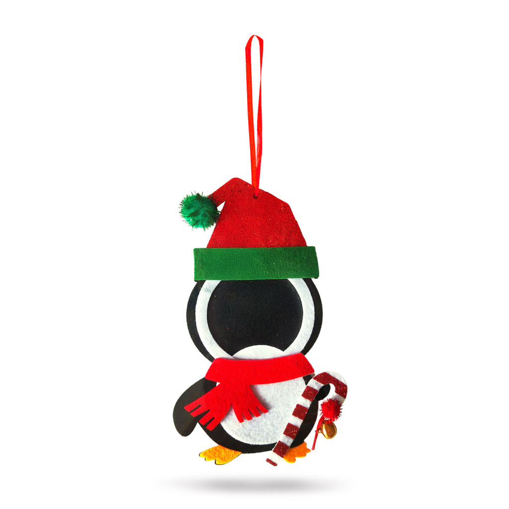 Dobja fel otthonát ezzel a vidám, filcből készült fényképtartó dísszel! A háromféle – mézeskalács figura, Mikulás és pingvin – változatban érhető el. Kedves megjelenésével és a csilingelő csengettyűvel ünnepi hangulatot teremt bármely helyiségben. A cukorbottal díszített dekorációt akasztójának köszönhetően könnyen rögzítheti, ideális ajtókra, ablakokra, karácsonyfára vagy akár ajándékcsomagra is. Könnyű, puha anyagból készült, így gyermekekkel közösen is biztonságosan dekorálhatunk vele.