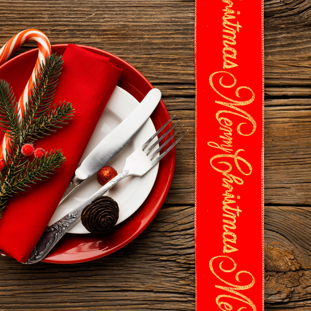 Tegye egyedivé szeretteinek szánt ajándékait, karácsonyfáját vagy az ünnepi asztalt textilből készült karácsonyi dekorszalaggal. Az élénk piros színű szalagot, glitteres "Merry Christmas" felirat díszíti. A siker garantált!