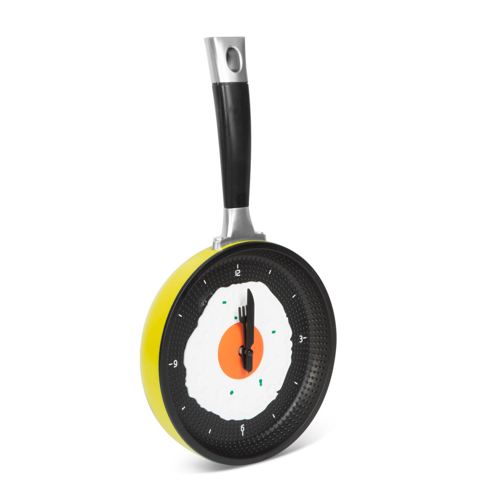 Egyetlen szakács konyhájából sem hiányozhat ez a serpenyőnek álcázott falióra. A design-os kivitelezésnek köszönhetően megtévesztően hasonlít a hagyományos serpenyőben készülő tükörtojásra. Az óra és percmutatót stílusosan villa és kés helyettesíti.