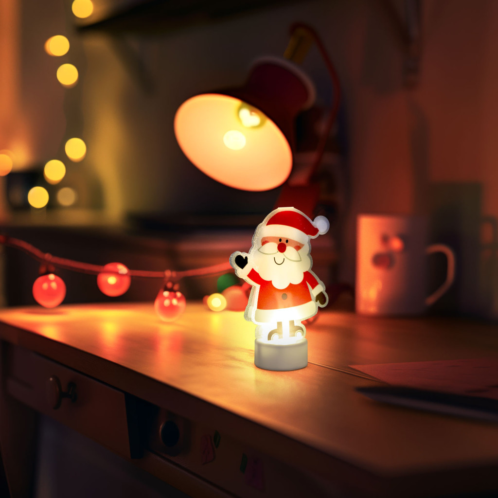 Az ünnep közeledtével varázslatos hangulatot teremthet ennek az asztali LED dekornak a segítségével. A talpban elhelyezett LED fény megvilágítja a formát, ezzel megteremtve a helység meghitt, karácsonyi hangulatát. A LED technológiának köszönhetően alacsony energiafogyasztású, a három gomb elemnek köszönhetően nincsenek vezetékek, könnyen elhelyezhető bárhol.