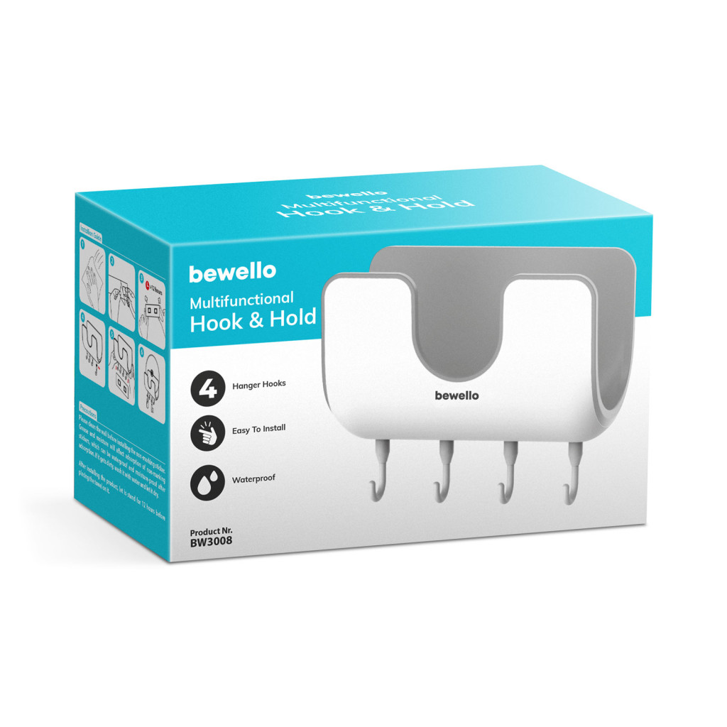 Az öntapadós rögzítésnek köszönhetően bármilyen felületre könnyen és gyorsan felhelyezhető, legyen az csempe, fa vagy falfelület. A 4 db mozgatható akasztónak köszönhetően az egész család tárolhatja rajta törölközőjét. A modern kialakítású felső tárolórész számos fürdőszobai kellék tárolását teszi lehetővé.
