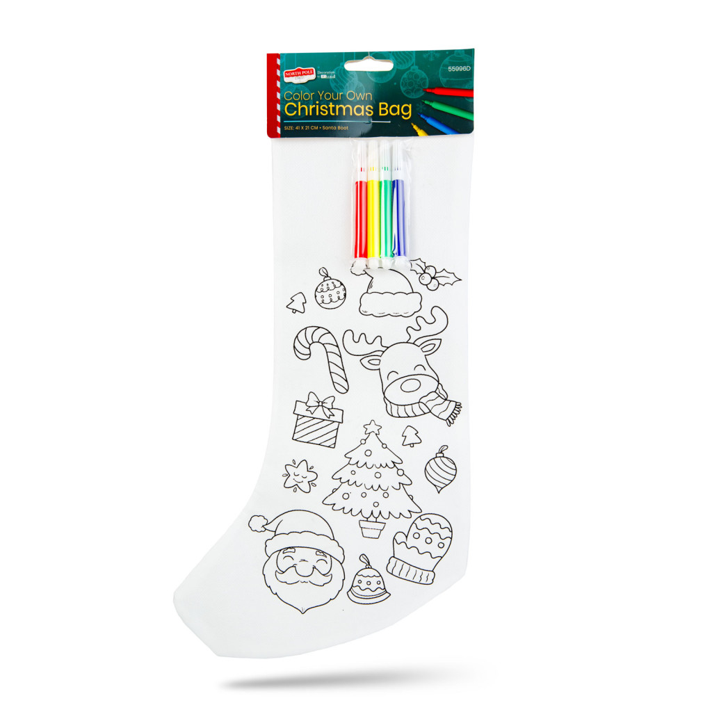 Színezd magad mikulás zokni színes filctoll készlettel. Kettő az egyben: mikulás zokni és foglalkoztató gyerekeknek. Színezéskor a zokni két anyaga közé vastagabb papírt kell tenni, hogy a hátoldalra ne kerüljön festék.