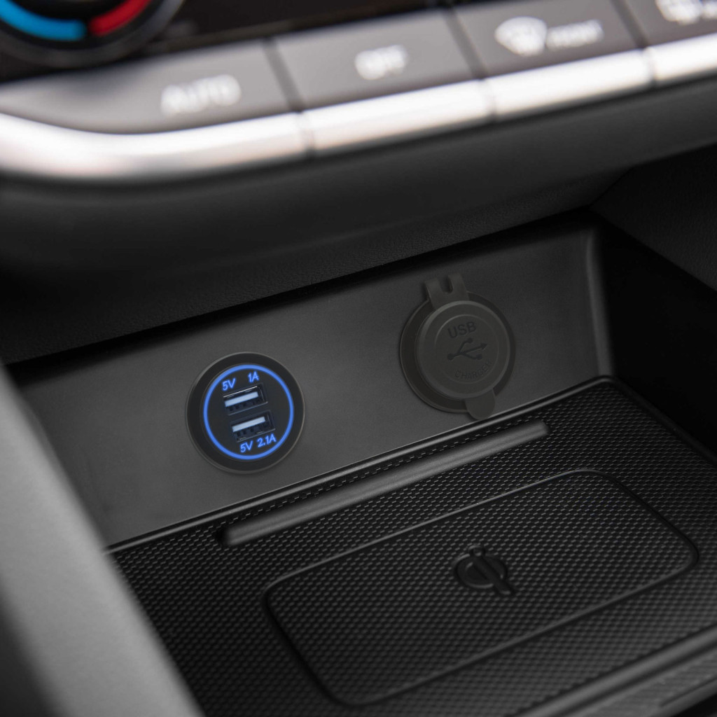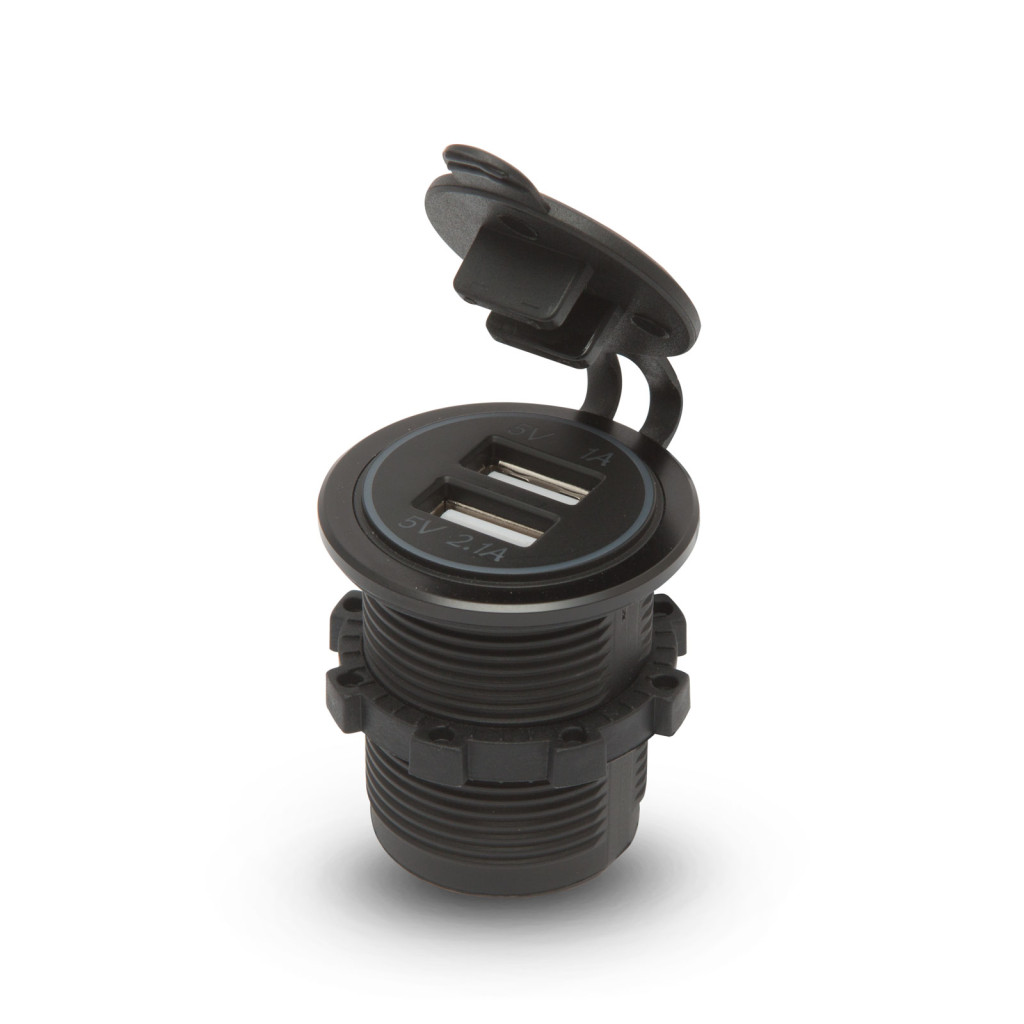 Autós szivargyújtó helyére beépíthető USB aljzat. Használatával nincs szükség a szivartyújtóba dugható USB adapterre, az egész szivargyújtó aljzat cserélhető, ezáltal megelőzhetőek az esetleges érintkezési hibák. A kék világítás jelzi, hogy feszültség alatt van az aljzat, továbbá sötétben elősegíti az USB kábel csatlakoztatását. A gumi zárókupak megakadályozza, hogy por, szennyeződés jusson az USB portokba, valamint használaton kívül a kék LED világítást eltakarja. Ez a zárókupak tetszés szerint eltávolítható.
