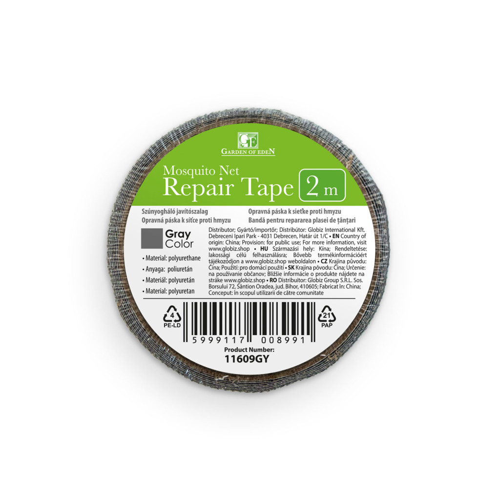 Ez az öntapadós szalag, sérült, szakadt szúnyoghálók javítására szolgál. A sérült részt, a szalagból levágott tetszőleges hosszú szalaggal javíthatja. Akár foltokban történő javítás is lehetséges. A szürke szín, a méretre készített, keretes szúnyoghálók által leggyakrabban előforduló szín, így a legtöbb szúnyogháló javításához ideális eszköz.