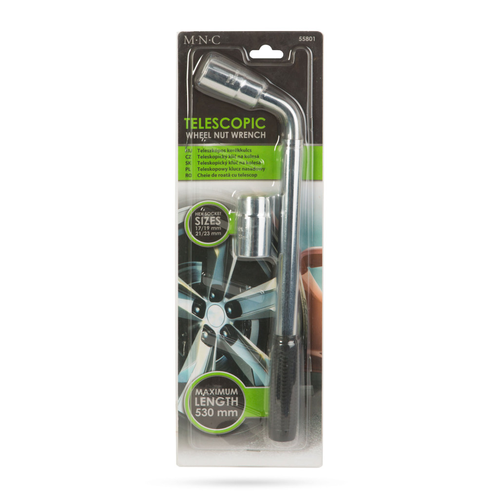 Teleszkópos kerékkulcs. Ennek a terméknek a használatával gyerekjáték a kerékcsere! A teleszkópos nyél lehetőséget biztosít az erőkar növelésére, így könnyebben lazíthatja le kerékanyáit. A 4 féle krova méret a legtöbb kerékanyával kompatibilis.