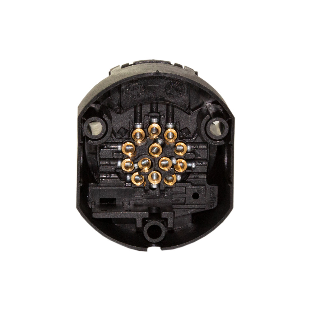 | Pólusok megnevezése / Kábelek színei: | 1 - sárga - bal index 2 - kék - ködzárófény 3 - fehér - test 4 - zöld - jobb index 5 - barna - jobb helyzetjelző 6 - piros - féklámpák 7 - fekete - bal helyzetjelző 8 - szürke - tolatólámpa 9 - barna/kék - áramellátás 10 - barna/piros - töltő vezeték (kapcsolt szál) 11 - szabad 12 - szabad 13 - fekete/fehér - test |