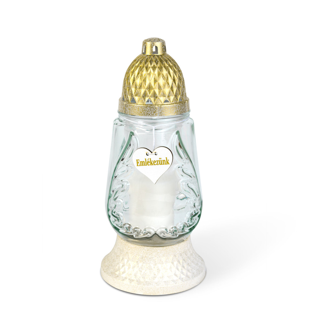 Ez a klasszikus stílusú mécses méltó kiegészítője lehet megemlékezéseknek, ünnepeknek vagy temetőlátogatásoknak. Az áttetsző tartály elegáns megjelenést kölcsönöz, míg a tartozék kupak a láng védelmét szolgálja. A mécses tartós, időjárásálló anyagból készült, így kültéri használatra is ideális. Megbízható égési idejével hosszú időn keresztül biztosítja a béke és tisztelet kifejezését.