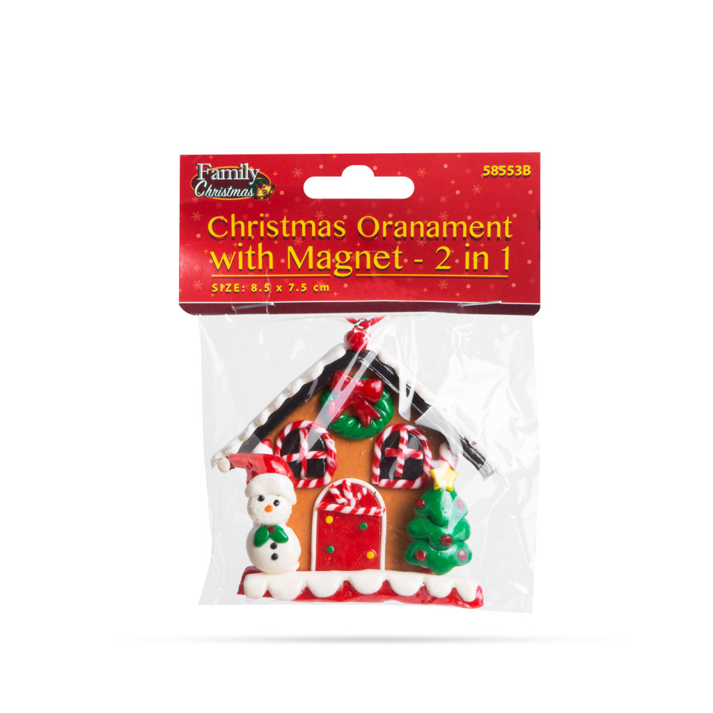 Díszítse karácsonyfáját, hűtőjét vagy egyéb fém bútorait egyedi, ínycsiklandó mézeskalács házikóval, amelyet egy vidám hóember díszít. A dísz 85 x 75 mm-es méretével tökéletesen illik a karácsonyfa díszítésébe, de a hátoldalán lévő mágnes segítségével hűtőn is elhelyezhető. Egyedi és bájos elemet ad az ünnepi dekorációnak.