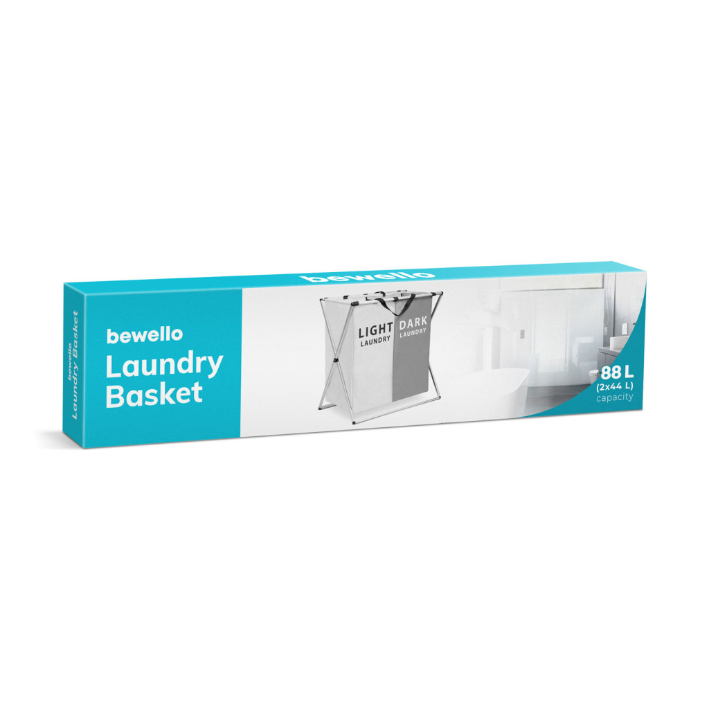 Modern megjelenésű, szövetből készült szennyestartó kosár több rekesszel. A masszív, fém váznak és a nagy befogadóképességnek köszönhetően akár több kilógram ruha, ágynemű tárolására is alkalmas. A rekeszek lehetővé teszik a különböző színű ruhák elkülönítését. Az egy mozdulattal történő összecsukás és a hordozófülek könnyű hordozhatóságot garantálnak.