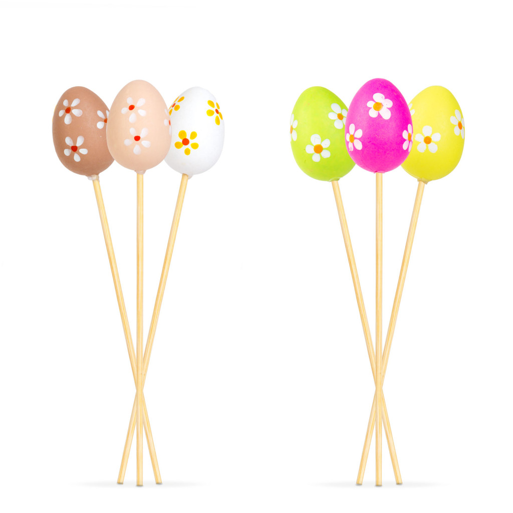 Tegye még ünnepibbé otthonát ezzel a különleges húsvéti dekorációval! A szett 12 darab, 6 különböző mintájú, leszúrható tojásdíszt tartalmaz, melyek kiválóan alkalmasak virágkompozíciók, ajándékcsomagolások vagy asztali dekorációk kiegészítésére.
